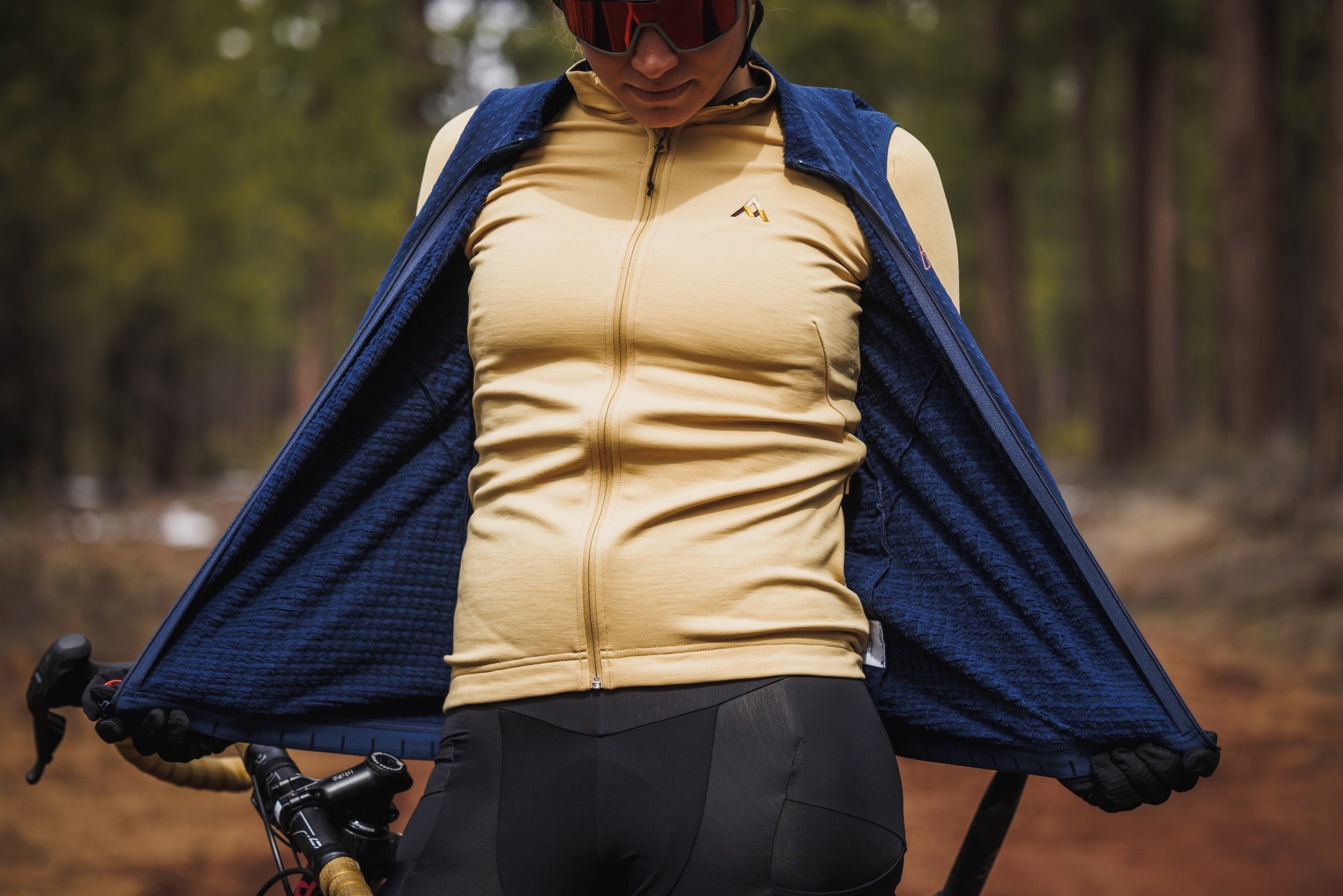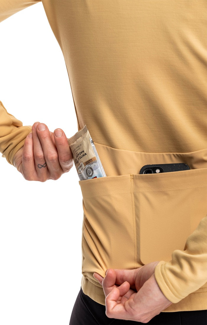 3つの背面ポケットは、グローブ装着時でも容易にアクセスすることが可能で、スマートフォンを保護するための内部スリーブ、ヘッドフォンケーブルポート、荷物の飛び出しを防ぐポケットガードが装備されています。裾のリフレクターは、低照度での視認性を向上させます。