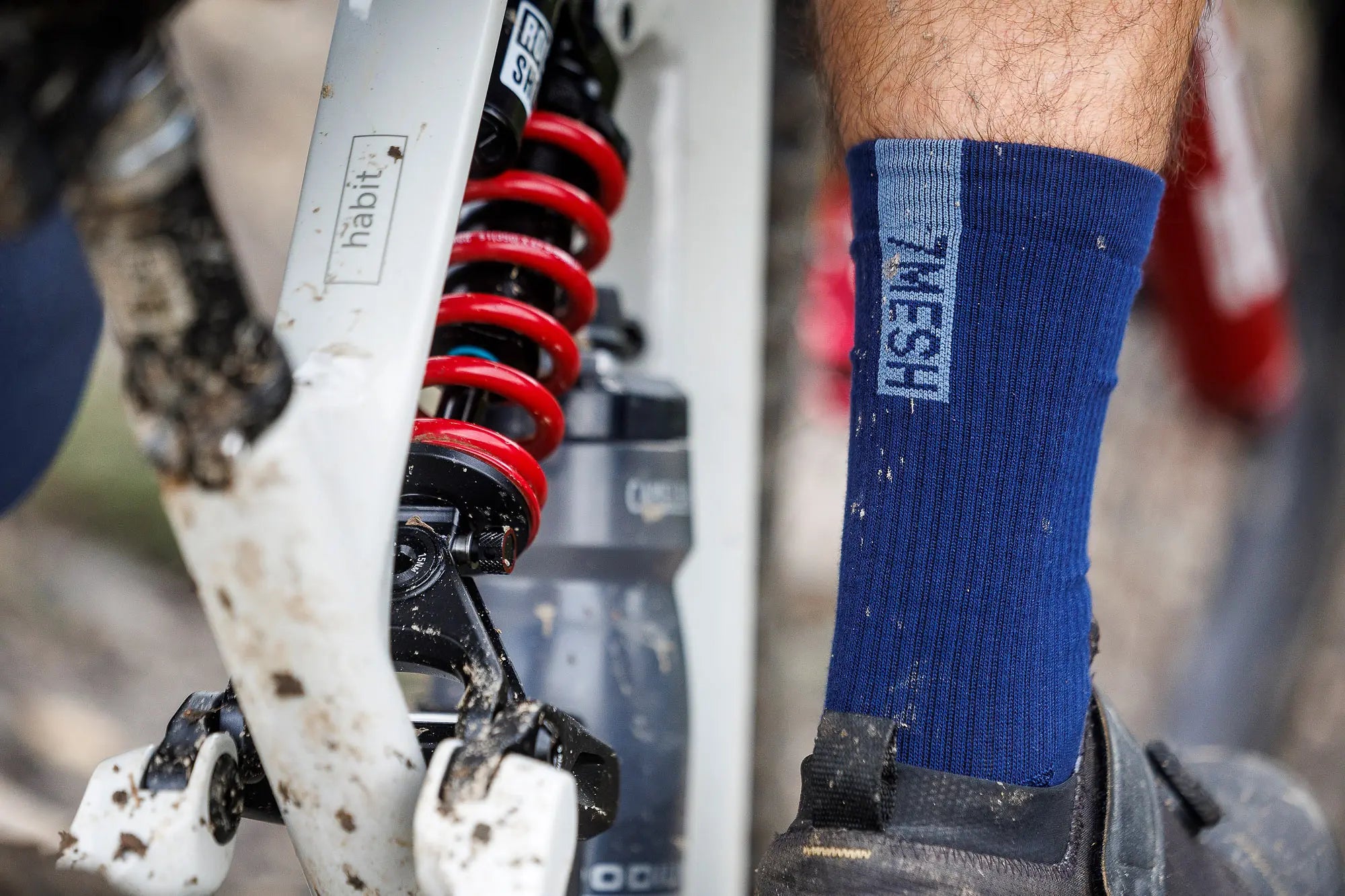 イタリア製の7mesh Gravity Sockは、アウターウェアとカラーマッチした理想的な一足。