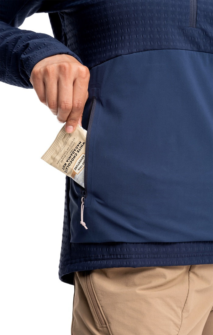 快適な構造のフードには伸縮性があり、ヘルメットの有無に関係なく使用できます。大きなデュアルジッパーのカンガルーポケットは、地図やコンパス、スナックなどを入れるのに十分なスペースがあります。夜間はフロントとリアの7meshリフレクティブロゴで視認性を確保。