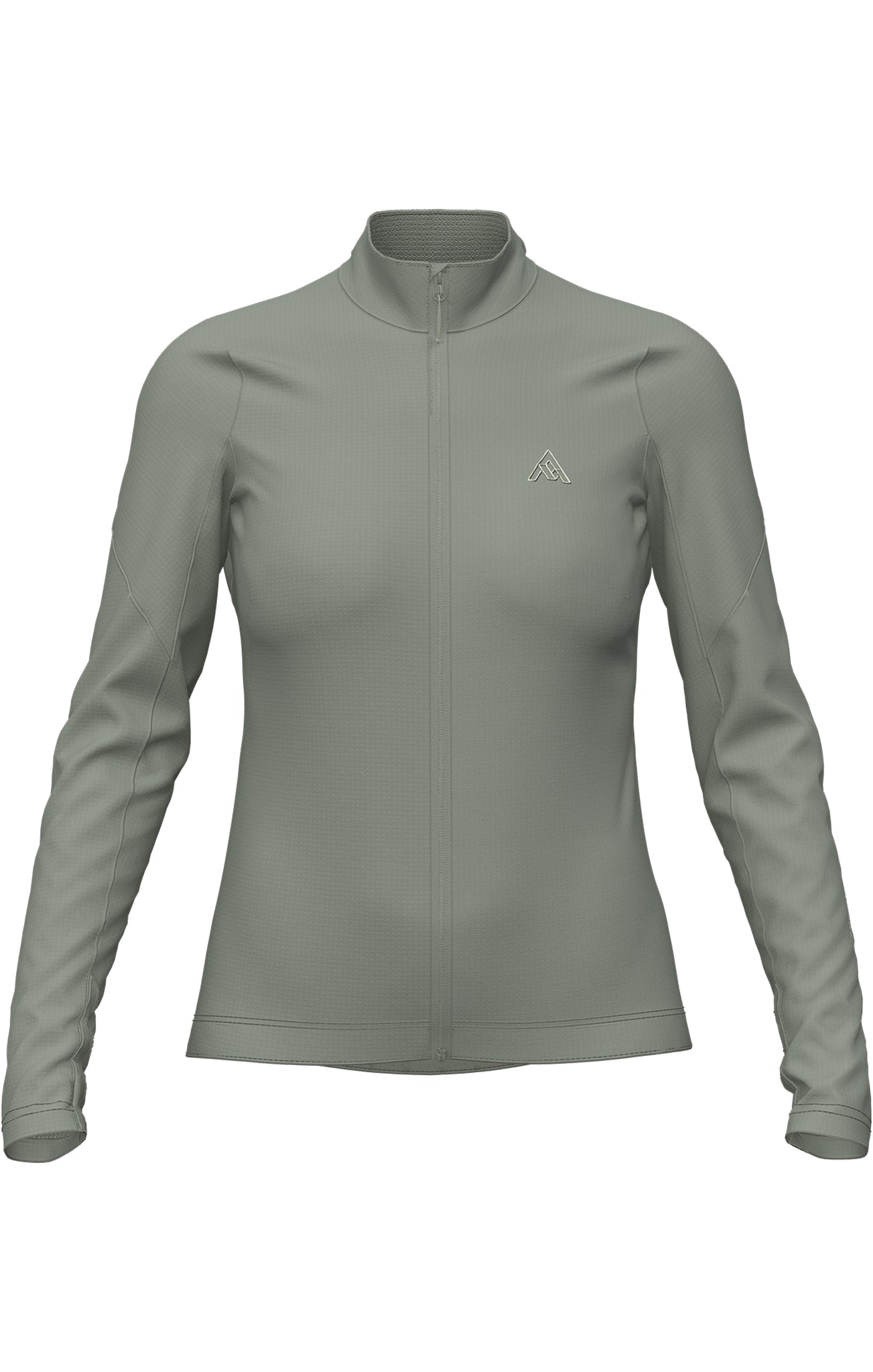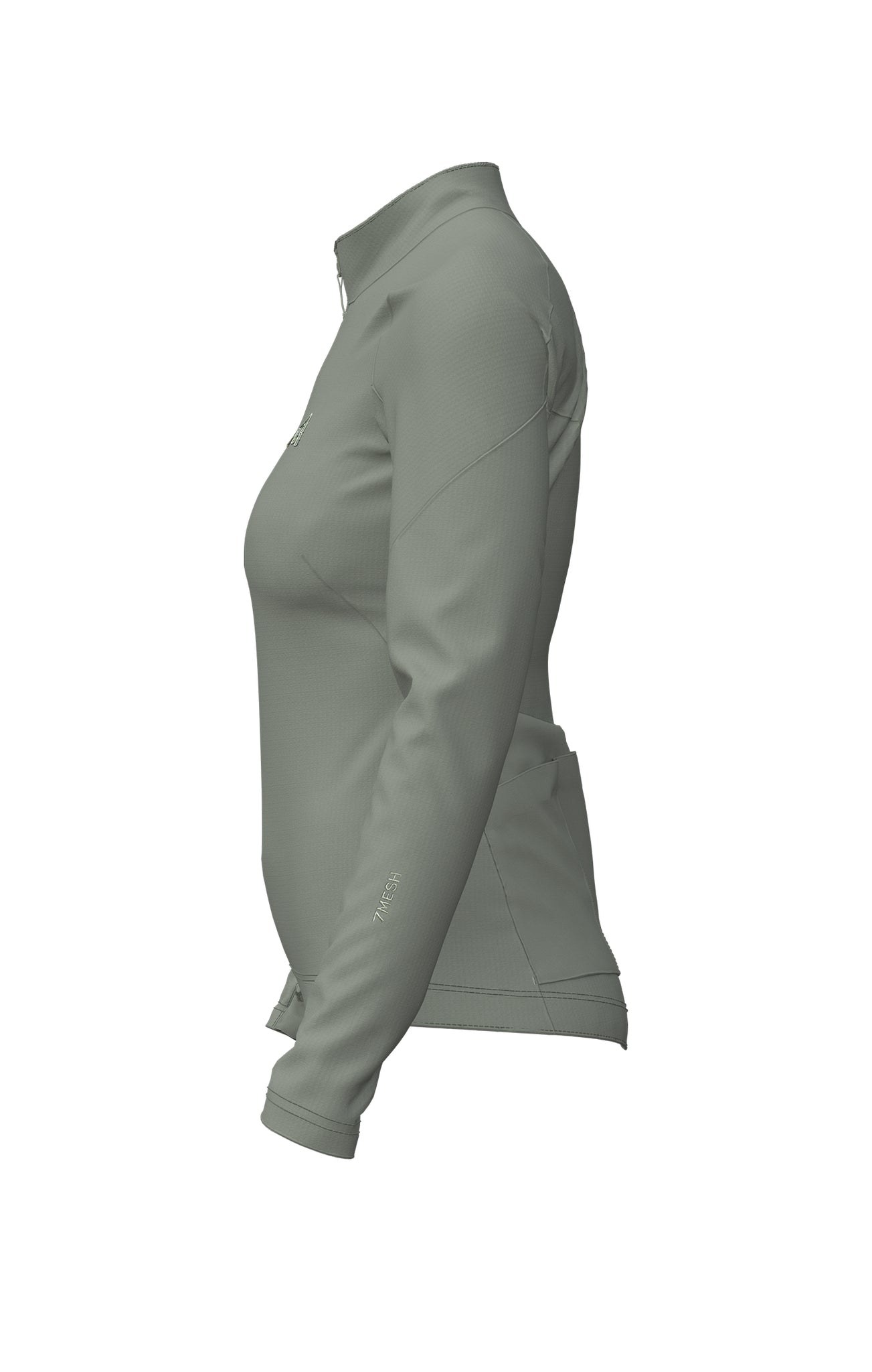 中間の高さの襟はソフトなフリース素材で肌触りがよく、フリース素材のあご当てと滑らかなフロントジッパーがそれを補います。シリコン製のグリッパーが付いた伸縮性のある裾は、スプリント時に裾がずり上がるのを防ぎます。背面にはエニシングポケットを備え、スナックや補給食を入れるのに十分なスペースが確保されています。
